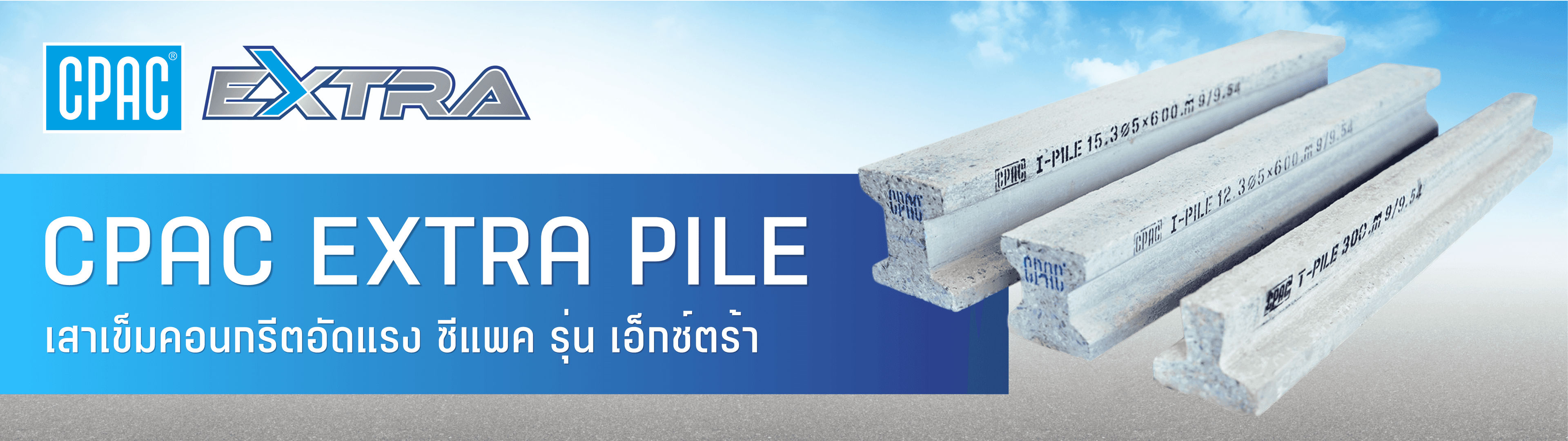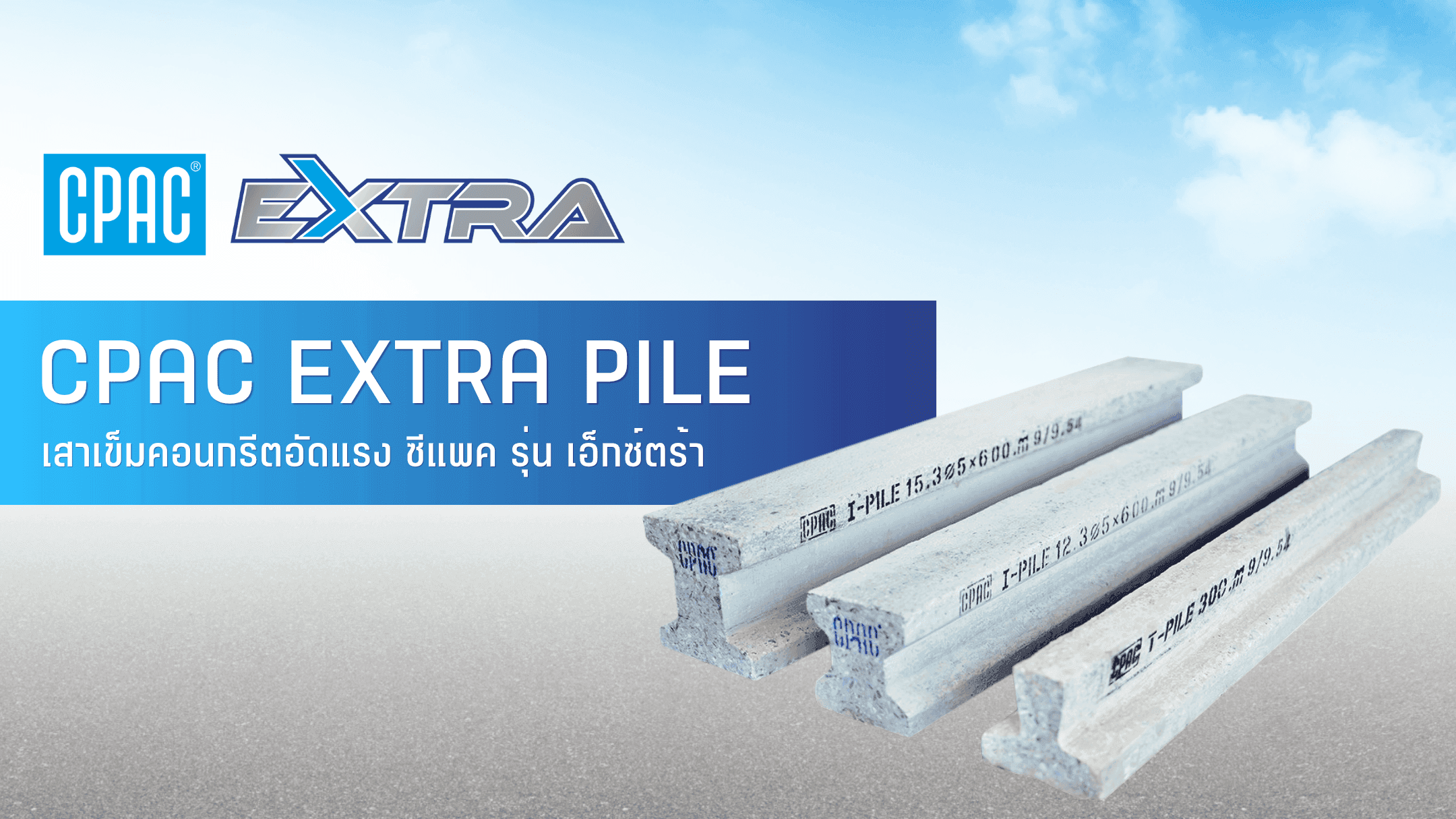 เสาเข็มเล็กคอนกรีตอัดแรง ซีแพค รุ่น เอ็กซ์ตร้า ช่วยทำให้งานก่อสร้างมีคุณภาพ สะดวก และรวดเร็วมากยิ่งขึ้น หนึ่งในผลิตภัณฑ์คอนกรีตสำเร็จรูปคุณภาพจาก ซีแพค ซึ่งมุ่งมั่นพัฒนาสินค้าและบริการ เพื่อตอบรับวงการก่อสร้างที่ต้องการ ความยืดหยุ่น รวดเร็ว และการควบคุมต้นทุนให้เหมาะสม เพื่อให้เกิดประสิทธิภาพสูงสุดผลิตด้วยระบบคอนกรีตเสริมลวดอัดแรง มีให้เลือกทั้งหน้าตัดตัวไอ หน้าตัดตัวที และหน้าตัดสี่เหลี่ยมตัน