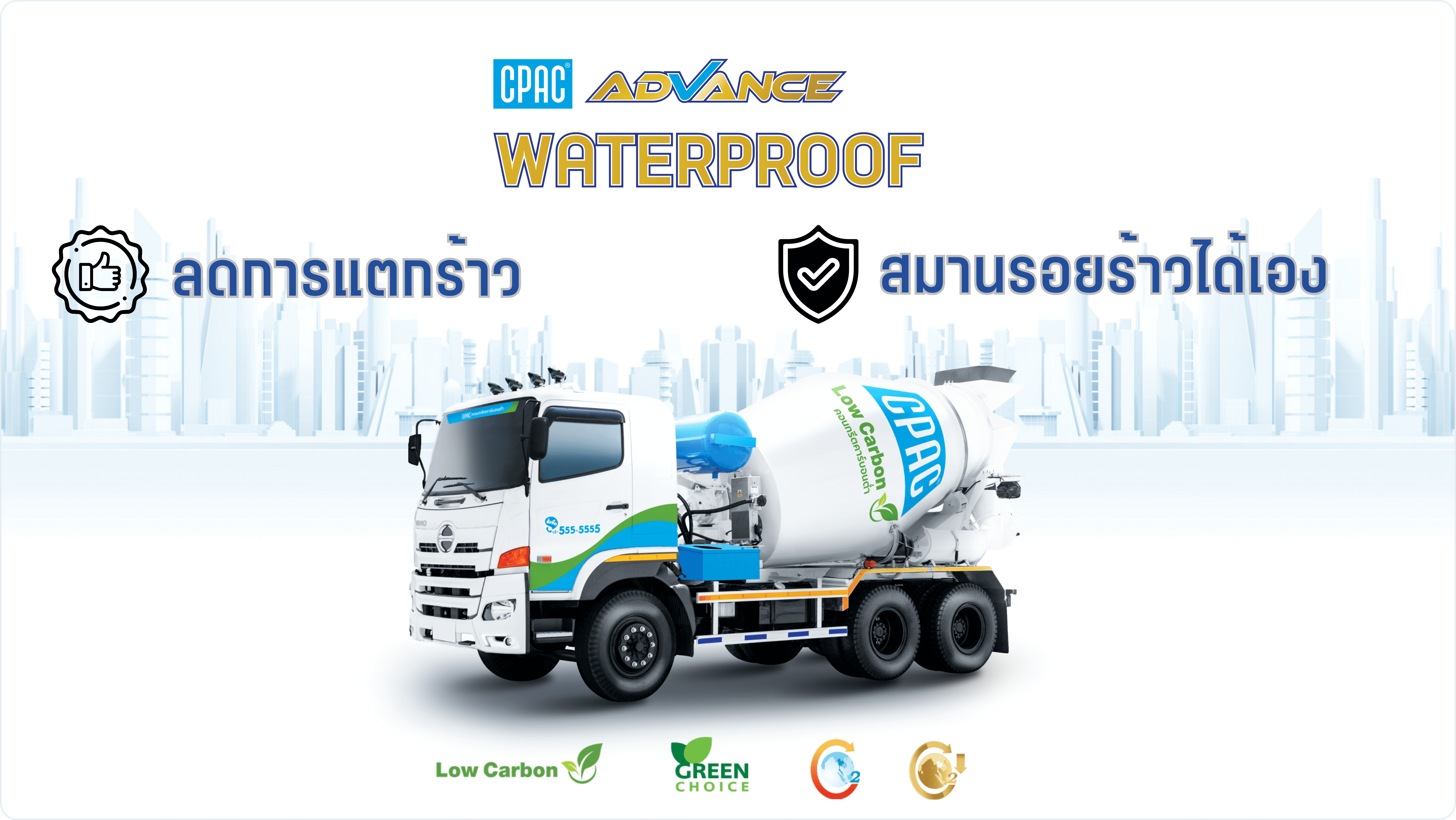 CPAC ADVANCED WATERPROOF นวัตกรรมคอนกรีตกันซึมซีแพค ให้ความทึบน้ำมากกว่าคอนกรีตทั่วไปถึง 2 เท่า ด้วยเทคโนโลยี CPAC Crystal Tech ที่มีคุณสมบัติซ่อมรอยร้าวได้อย่างมีประสิทธิภาพ ทนทุกสภาพอากาศ ปกป้องโครงสร้างยาวนานกว่าคอนกรีตทั่วไป